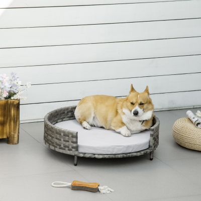 PawHut Hondenkennel Huisdierbed Hondenmand, weerbestendig, afneembaar kussen, Grijs